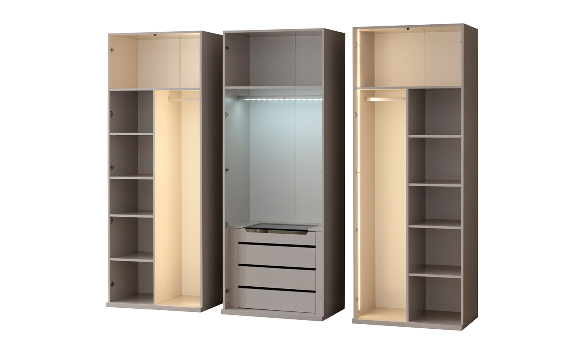 | Dolap İçeriği | Askı, raf, çekmece, led aydınlatma |