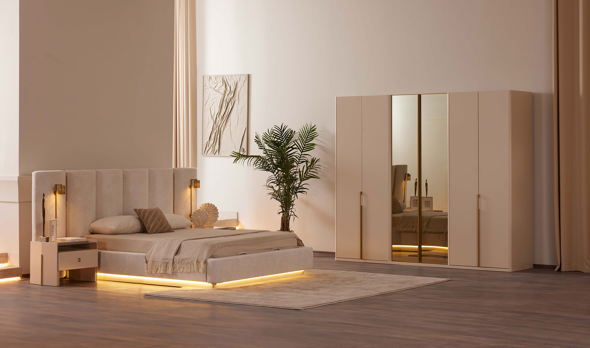| Dolap İçeriği | Askı, raf, çekmece, led aydınlatma |