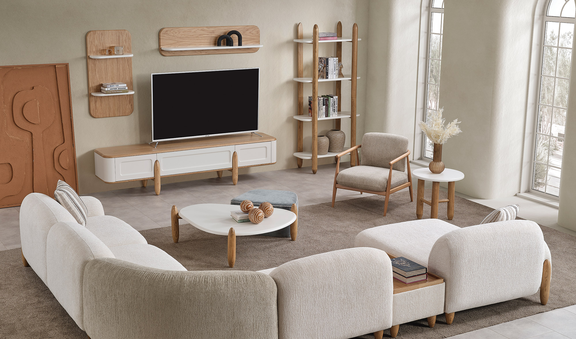 Beğendiğiniz ürünlerin siparişini ödemenin %30 unu havale yaparak verebilirsiniz.Alt çekmeceli - üst bloklu modüllü ve kitaplıklı tv ünitesi modeli