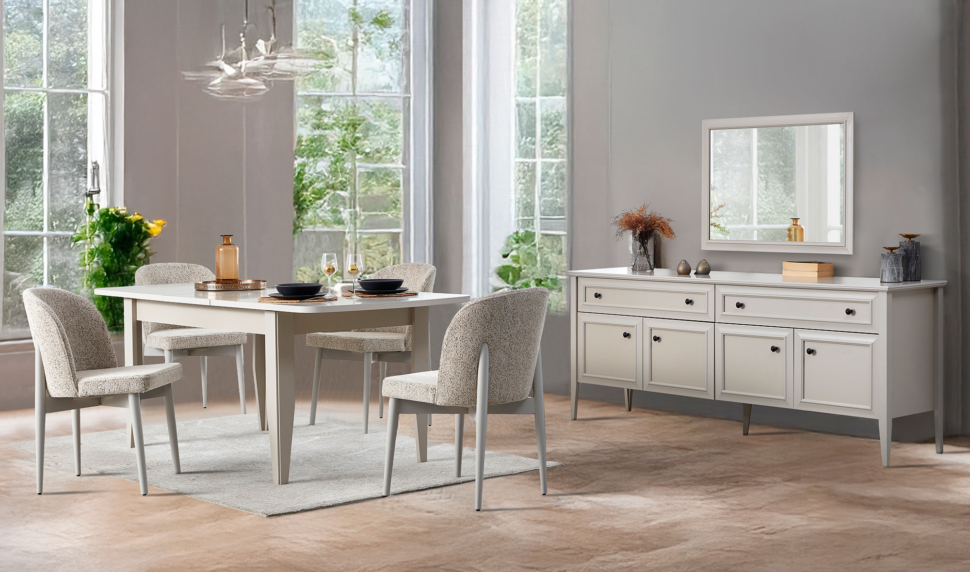 | Takım İçeriği | Konsol ve aynası, yemek masası, 6 adet sandalye |