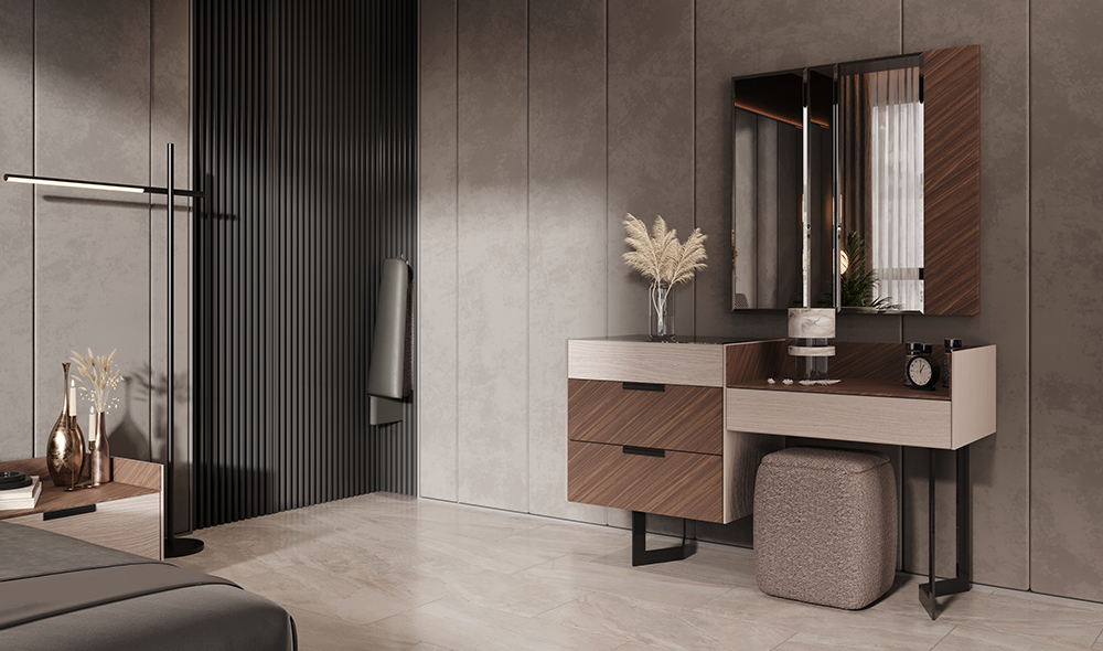 Yatak Odası; 6 kapılı gardrop (tek kapılı dolap fiyata dahil değildir) - bazalı karyola ve başucu - şifonyer ve aynası ve 2 adet komodinden oluşmaktadır