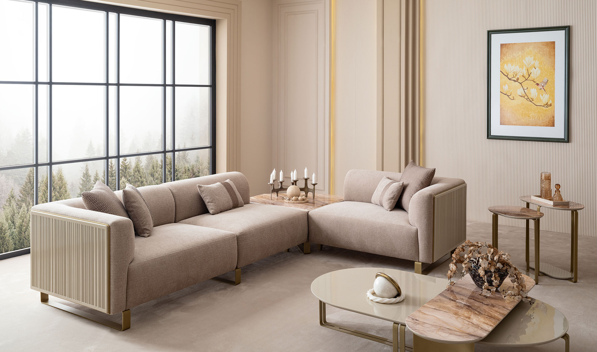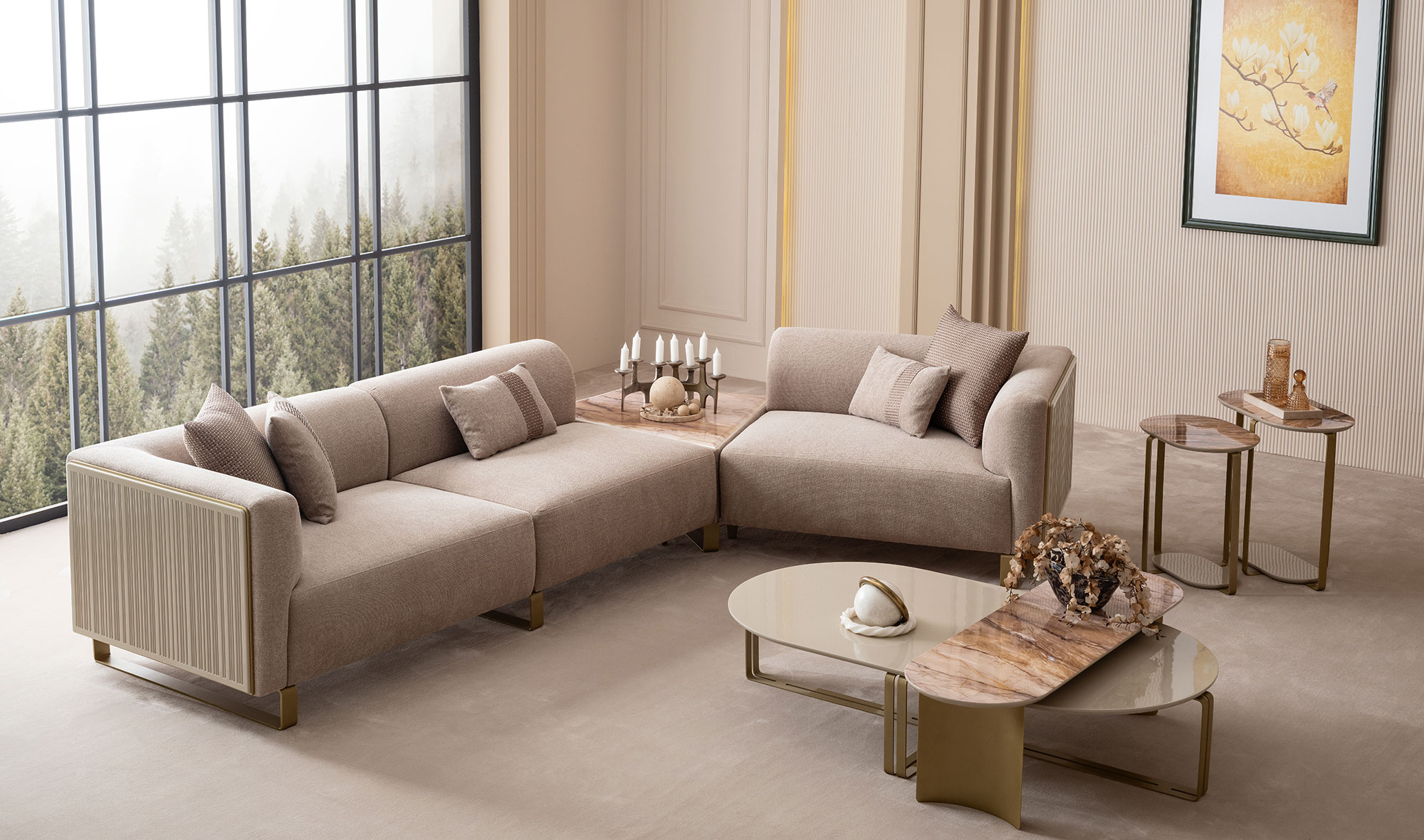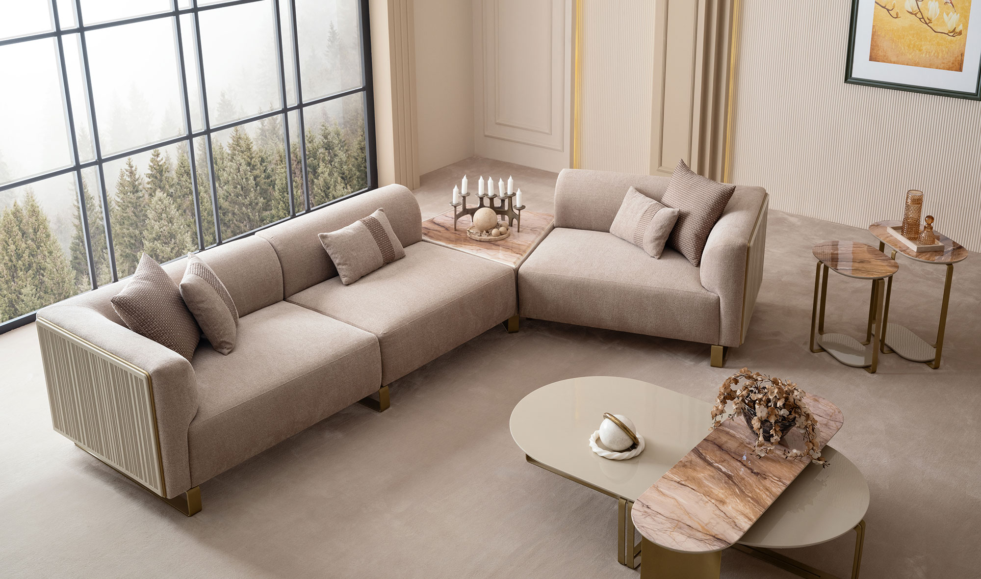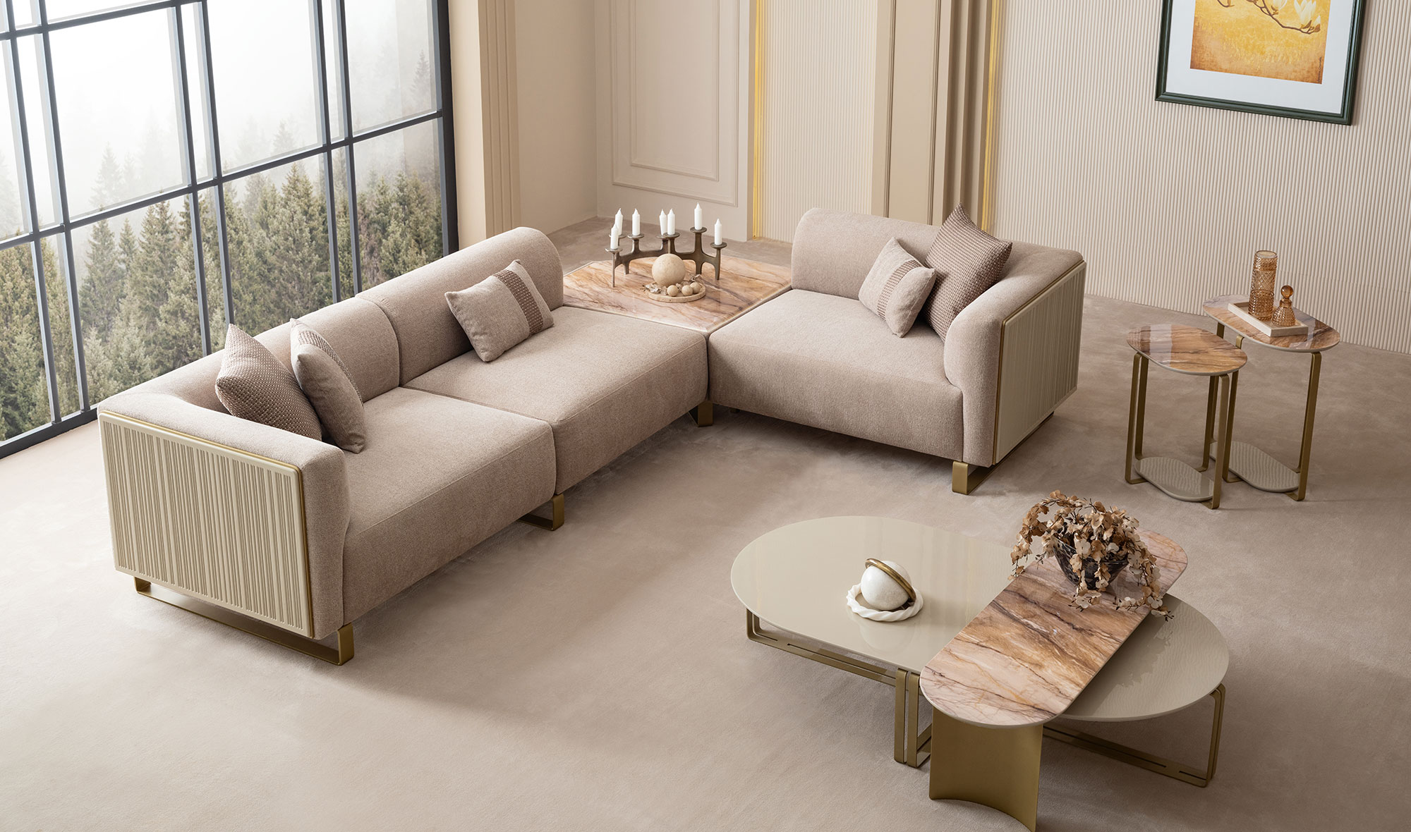 Beğendiğiniz ürünlerin siparişini ödemenin %30 unu havale yaparak verebilirsiniz.İki adet tek kollu modül 121 cm ahşap detaylı - bir adet kolsuz modül 101 cm ve bir adet ara puf modül - mermer fiyatıdır