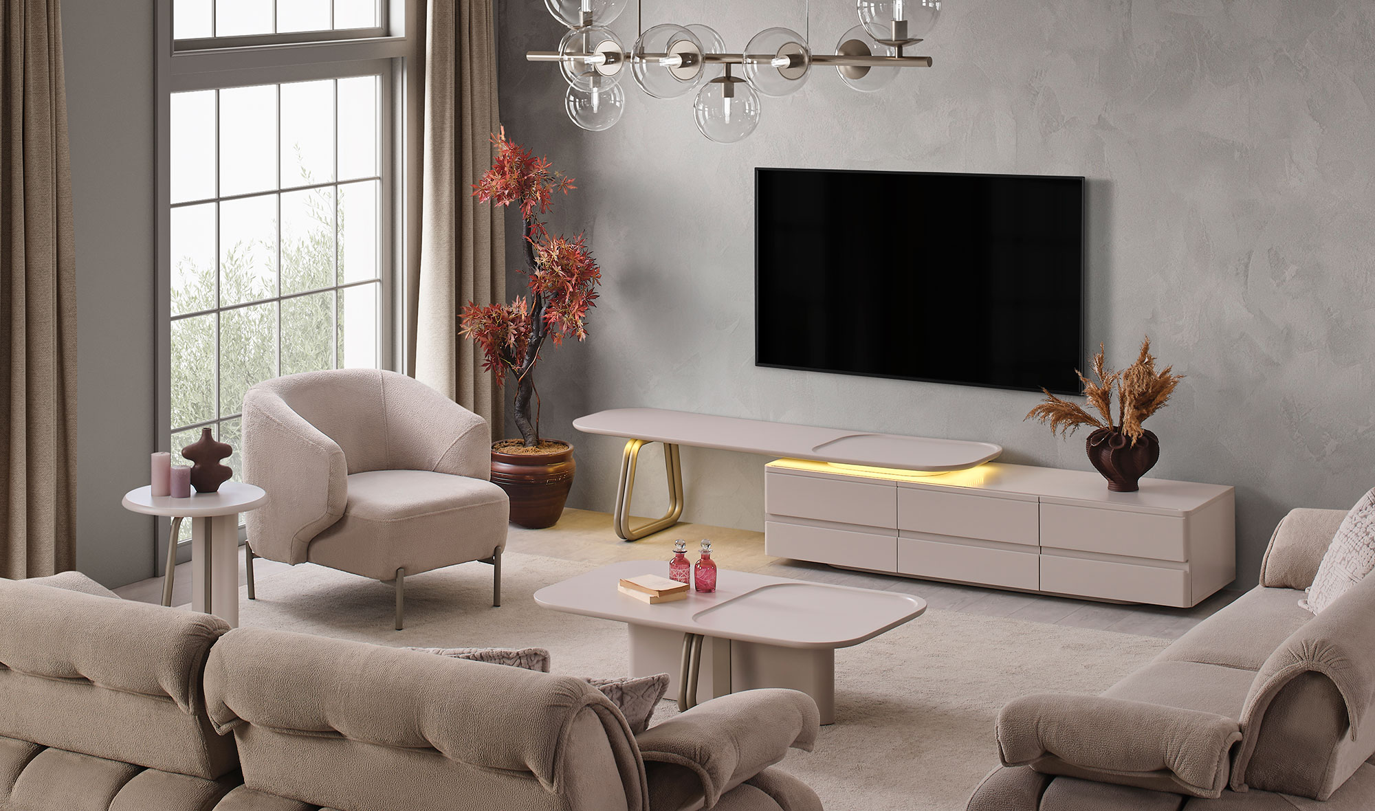| Opsiyonel Parçalar | Tv ünitesi ve sehpa opsiyoneldir, fiyata dahil değildir |