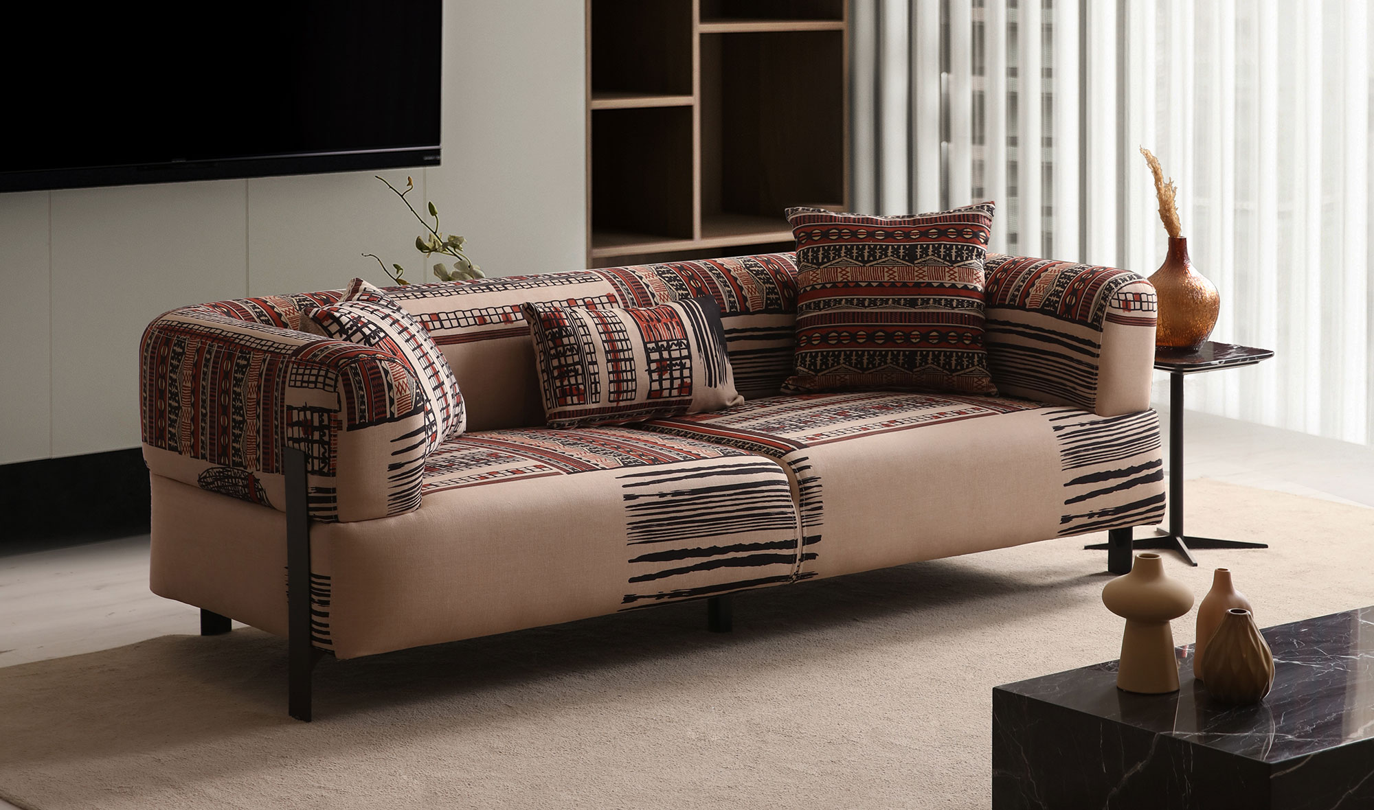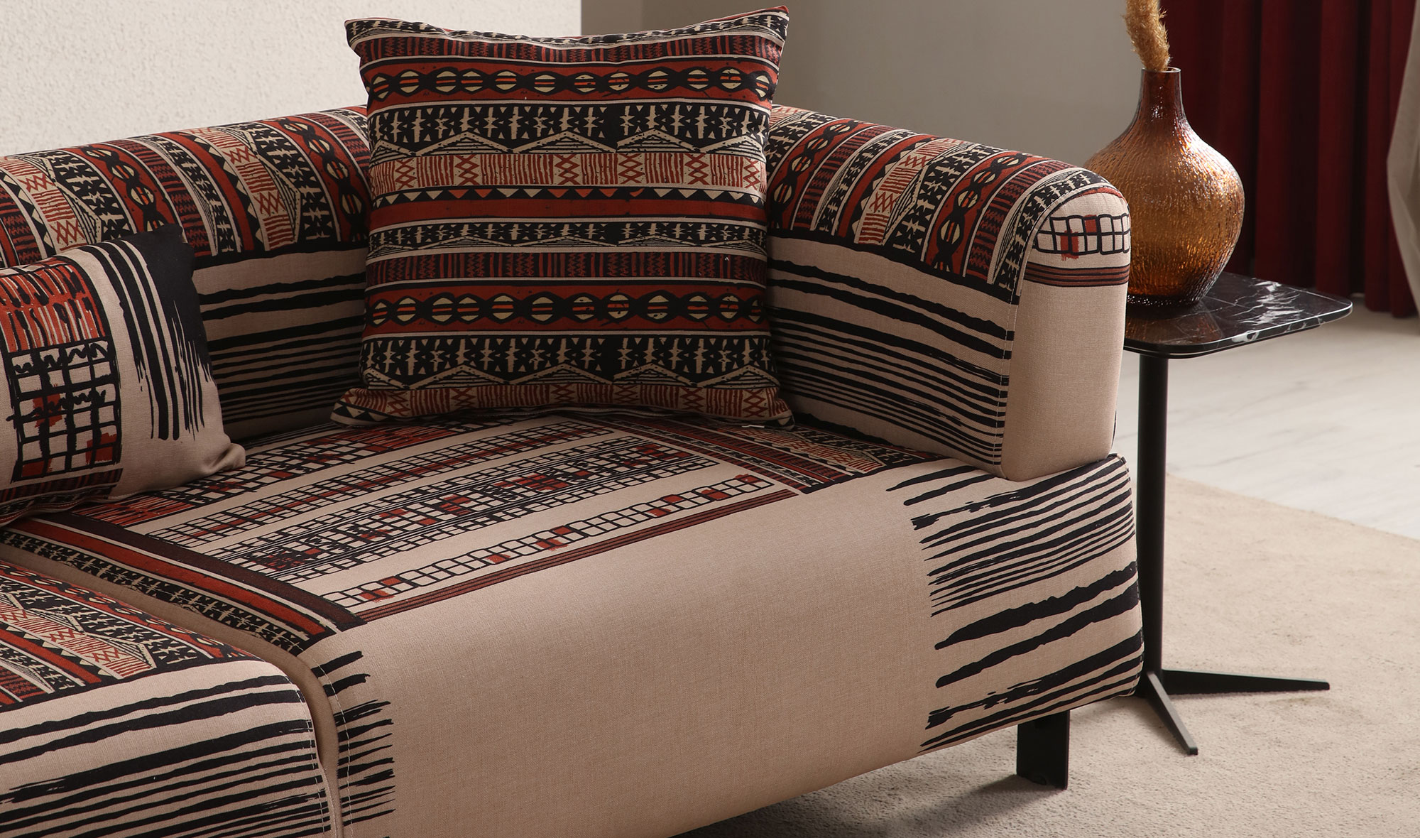 Bir adet üçlü koltuk (desenli) - bir adet üçlü koltuk ve bir adet tekli koltuk fiyata dahildir
